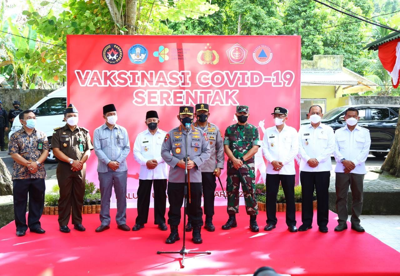 Maluku Utara – Kapolri Jenderal Listyo Sigit Prabowo meninjau akselerasi percepatan vaksinasi Covid-19 yang digelar di 34 Provinsi Indonesia dengan menghadiri secara langsung di Pantai Sulamadaha, Kota Ternate, Maluku Utara, Jumat (14/1/2022).