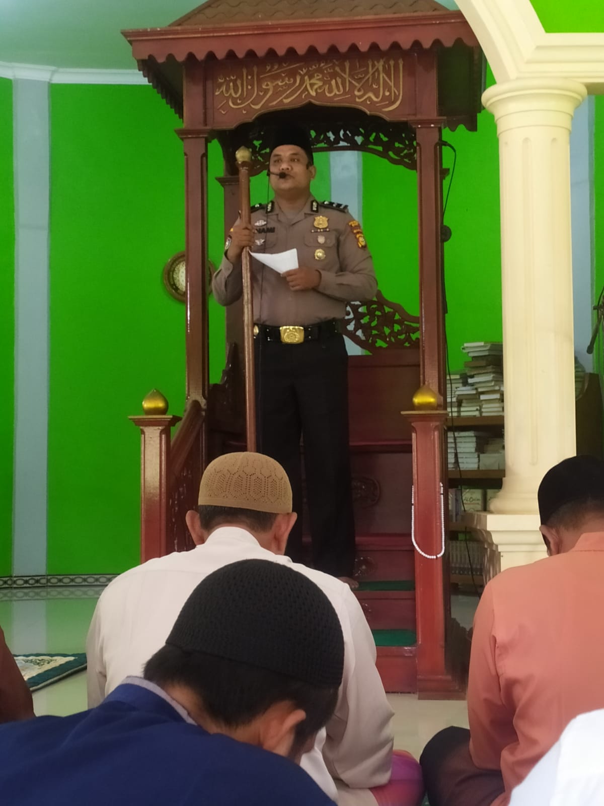 Kali ini Aipda Irhami dalam khutbah yang berjudul “Mengajak masyarakat Untuk Sholat Lima Waktu berjamaah di mesjid dan musholla” yang ada diwilayah kita masing masing.