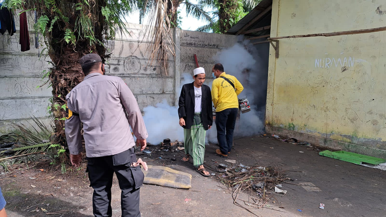 pada minggu lalu sudah ada masyarakat yang terjangkit Demam Berdarah,” terang AKP YUSIRWAN usai melakukan kegiatan foging antisipasi Nyamuk demam berdarah, Jumat, 21/10/2022.