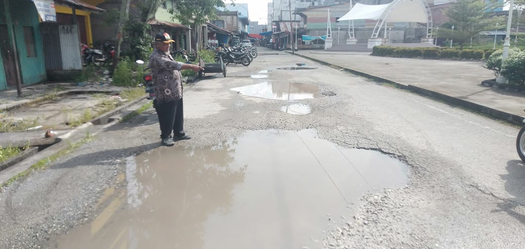 SIAK – Akses Jalan Sukaramai tepatnya di depan Taman Sarifah Sembilan yang menuju pasar Kecamatan Sungai Apit (Pasar Sri Kuala), kelurahan sungai apit, dalam kondisi rusak parah. Jalan tersebut di penuhi dengan lubang – lubang besar yang menganga.