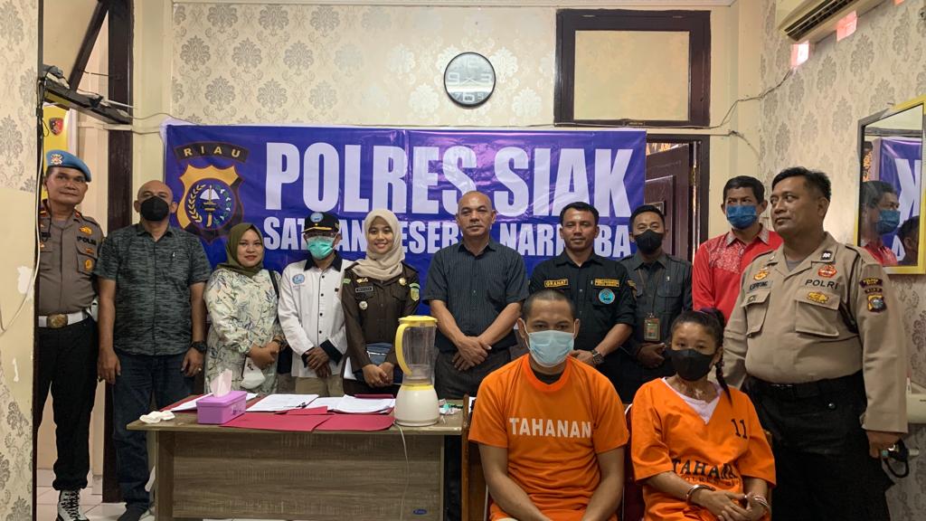 Dijelaskan bahwa barang bukti narkoba yang akan dimusnahkan seberat 4,54 ( empat koma lima empat ) gram disita dari tersangka NS yang ditangkap Satres Narkoba Polres Siak dan 17,35 ( tujuh belas koma tiga lima ) gram dari tersangka KS Yang ditangkap unit reskrim Polsek Minas.