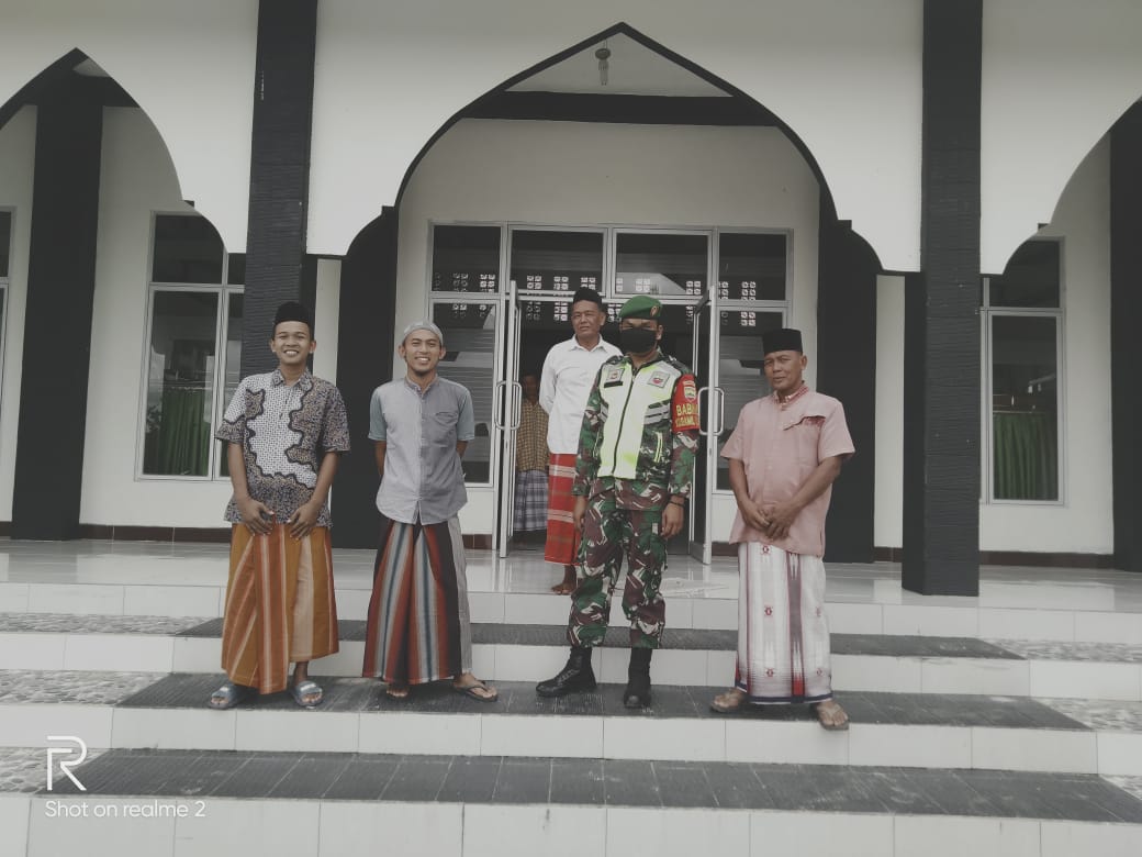 Babinsa Bersama Bhabinkamtibmas Lakukan Penerapan Protokol Kesehatan di Masjid Al Mutaqqin Kampung Sri Gading