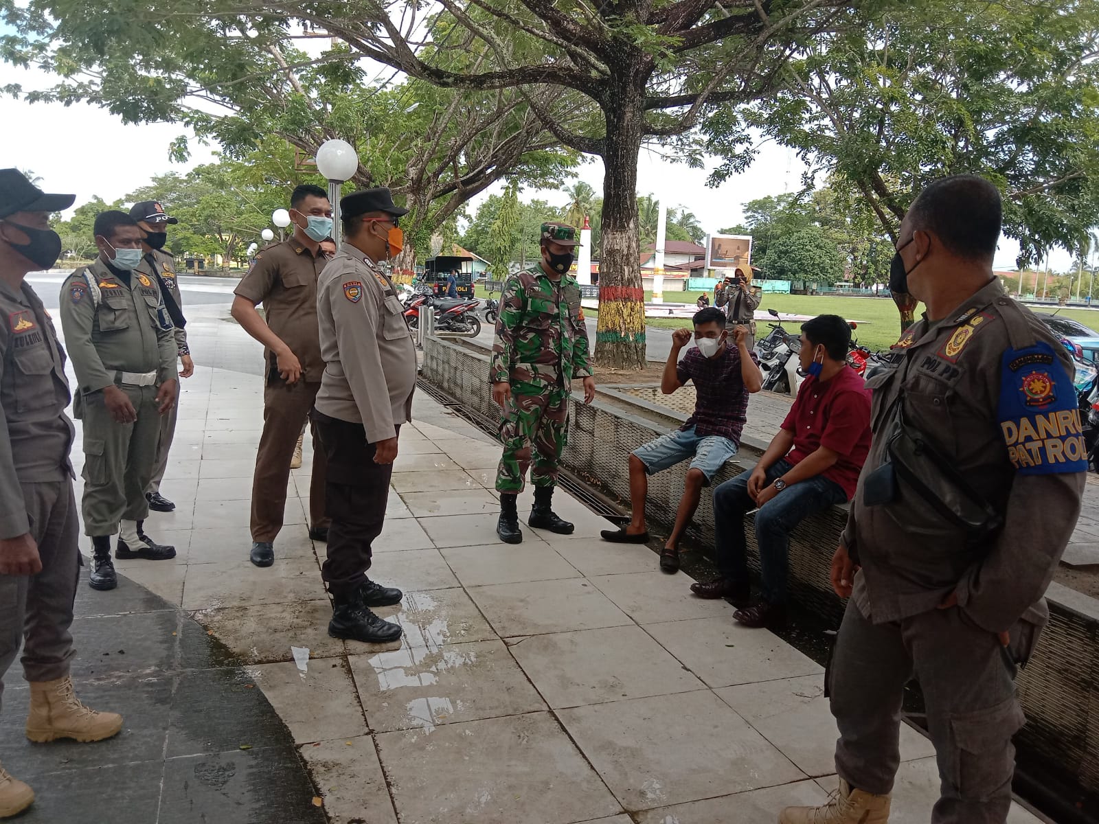 Siak Sri Indrapura – Operasi yustisi untuk menertibkan protokol kesehatan bagi warga terus dilakukan oleh tim gabungan yang terdiri dari personil Koramil 03/Siak, Polsek Siak dan Satpol PP.