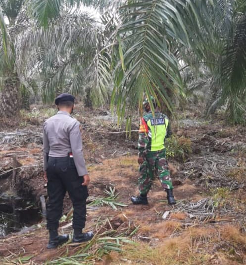 Babinsa Bersama Bhabinkamtibmas Laksanakan Patroli Karhutla Untuk Mencegah Terjadinya Kebakaran di Kampung Binaan