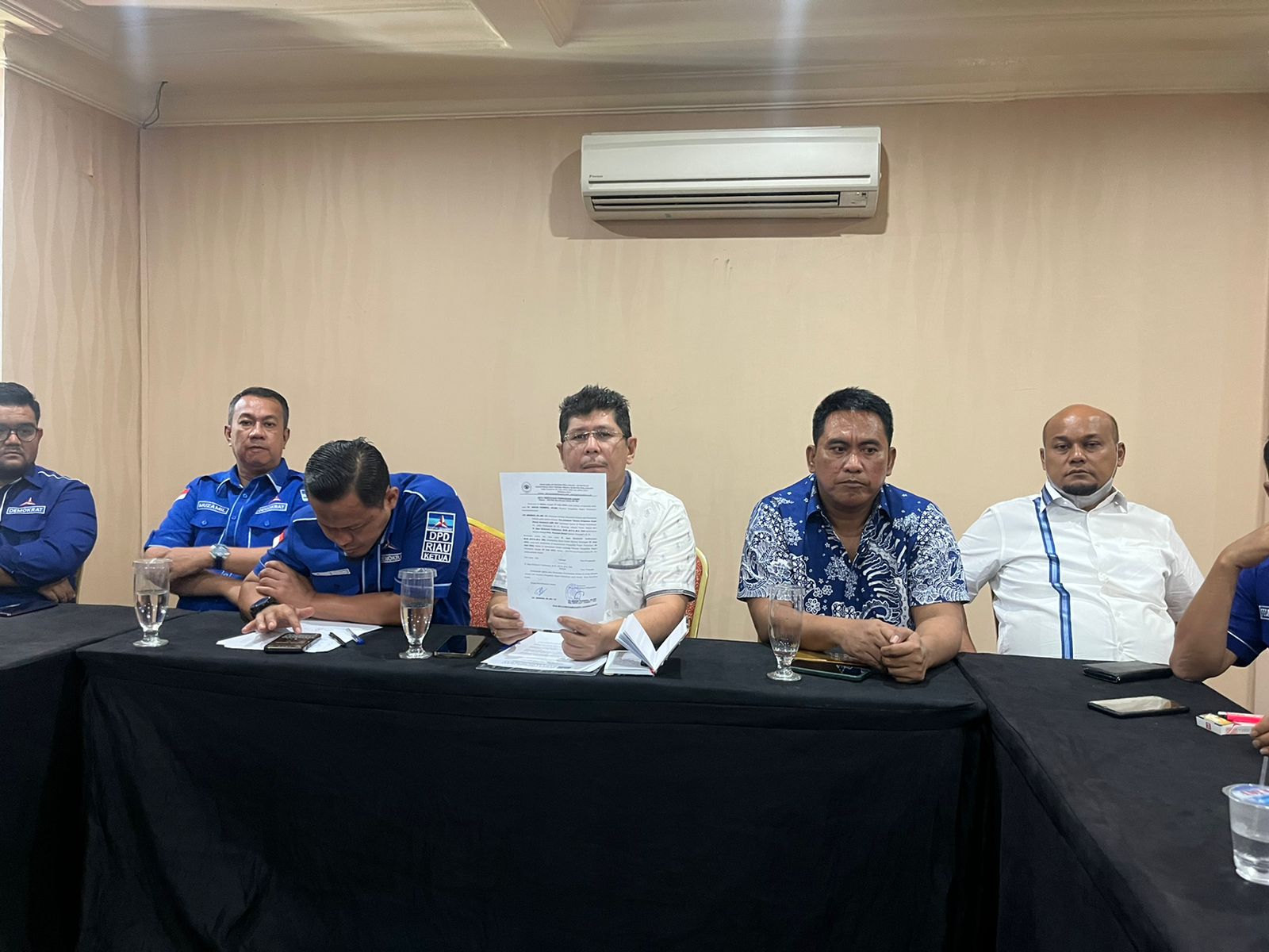 Hadir dalam kesempatan itu Ketua DPD Demokrat Riau Agung Nugroho, serta 12 ketua DPC Demokrat di 12 kabupaten/kota se-Riau. Kepada wartawan, Mehbob menjelaskan sejak didaftarkannya kasasi oleh DPP ke MA, maka secara otomatis putusan PN Pekanbaru belum inkrah sampai adanya putusan berikutnya.