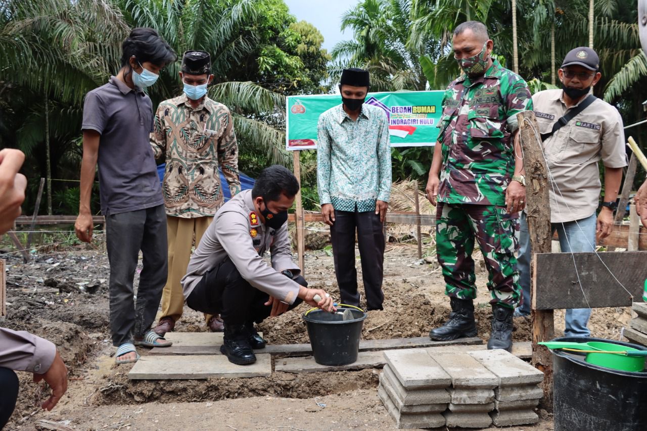 INDRAGIRI HULU – Kepala Kepolisian Resor (Kapolres) Indragiri Hulu (Inhu), AKBP Bachtiar Alponso S.I.K, M.S.i meletakkan batu pertama pembangunan rumah layak huni untuk Yumiati (53), janda kurang mampu dengan 5 orang anak dan mengalami depresi ringan.