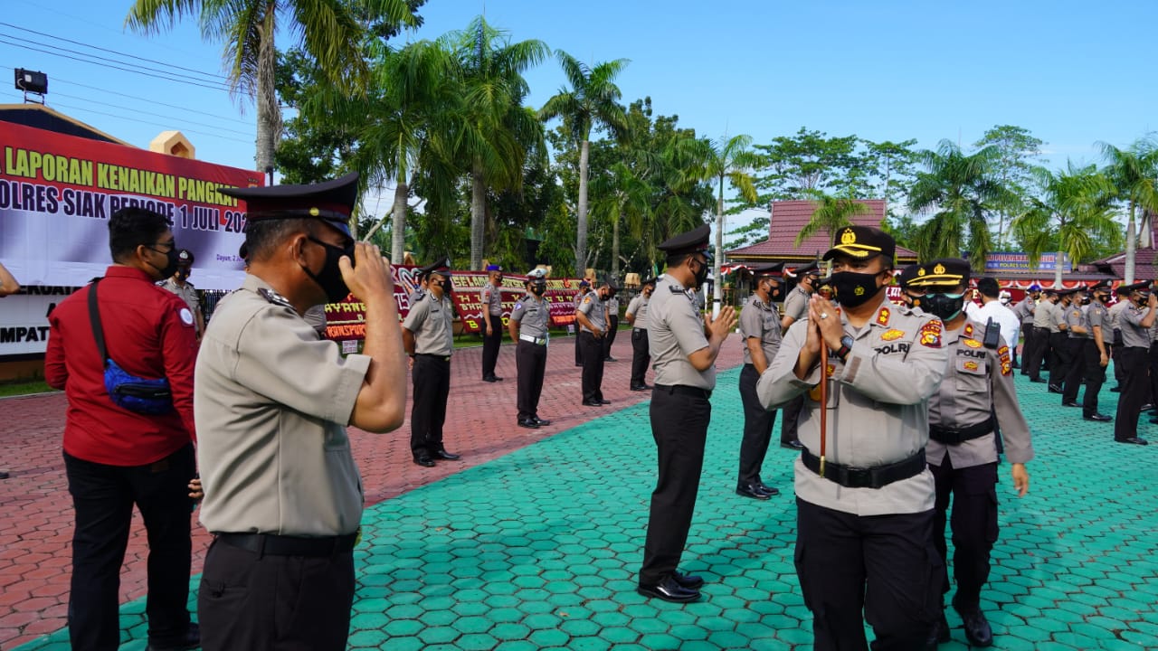 SIAK- Sebanyak 56 personel Kepolisian Resor (Polres) Siak naik pangkat. Kenaikan pangkat ini juga berkenaan dengan 75 tahun Hari Bhayangkara.