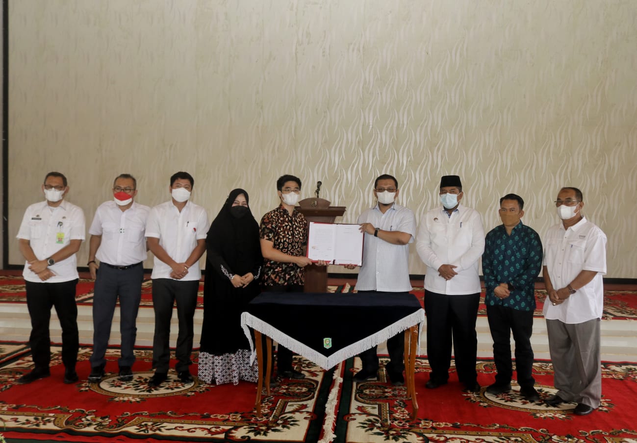 SIAK- Bupati Siak Alfedri hadiri penandatanganan Joint Venture(JV) antara PT. Samudra Siak (SS) dengan PT. Siak Berkat Sumatra Utara (SBSU) , yang dilaksanakan di Balairung Datuk 4 Suku, Komplek Perumahan Abdi Praja, Kecamatan Siak, Rabu (18/8/2021).