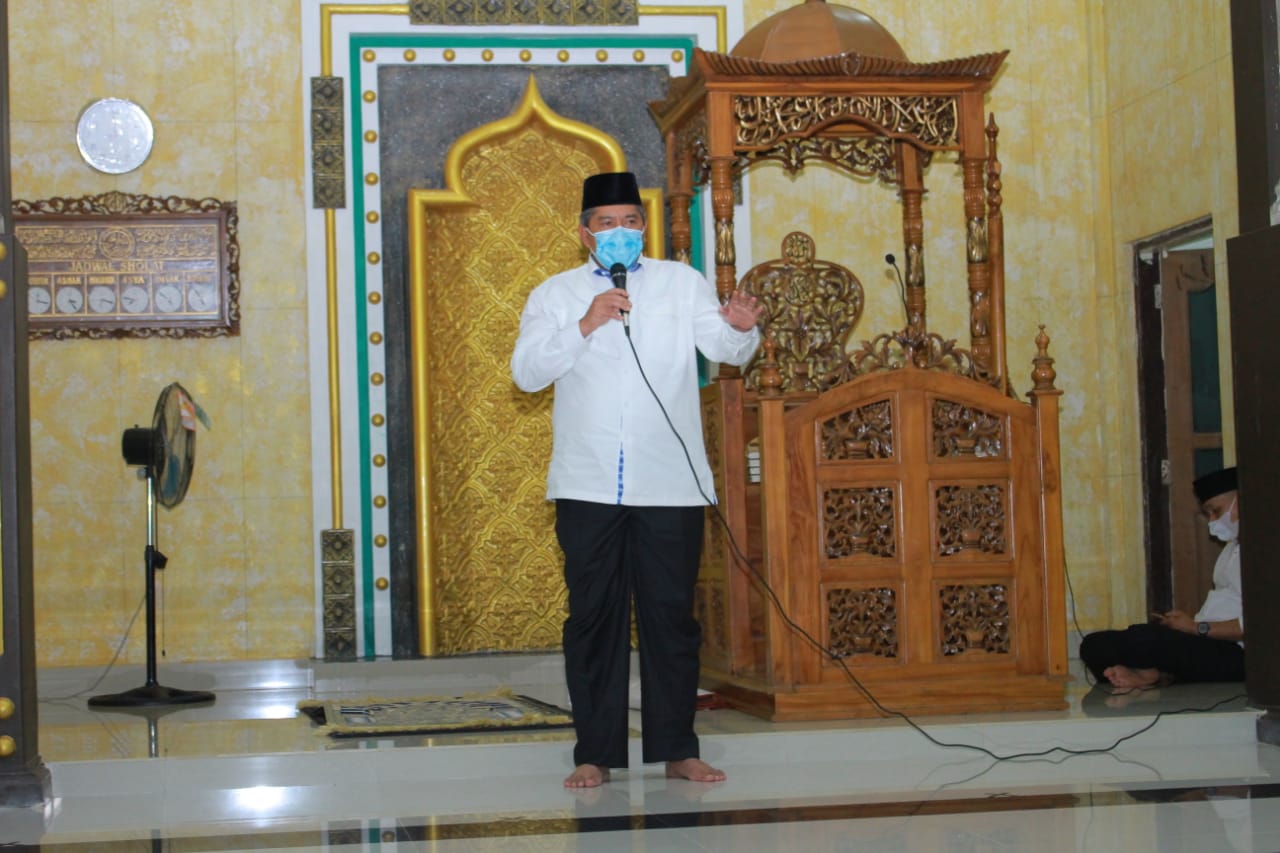 SIAK – Bupati Siak Alfedri menghadiri acara Safari Ramadhan 1442 Hijriyah Tahun 2021, Bertempat di Masjid Baitul Muttaqin jalan KH Ahmad Dahlan Kampung Kumbara Utama SP4, Kecamatan Kerinci Kanan, Senin (26/4/2021).