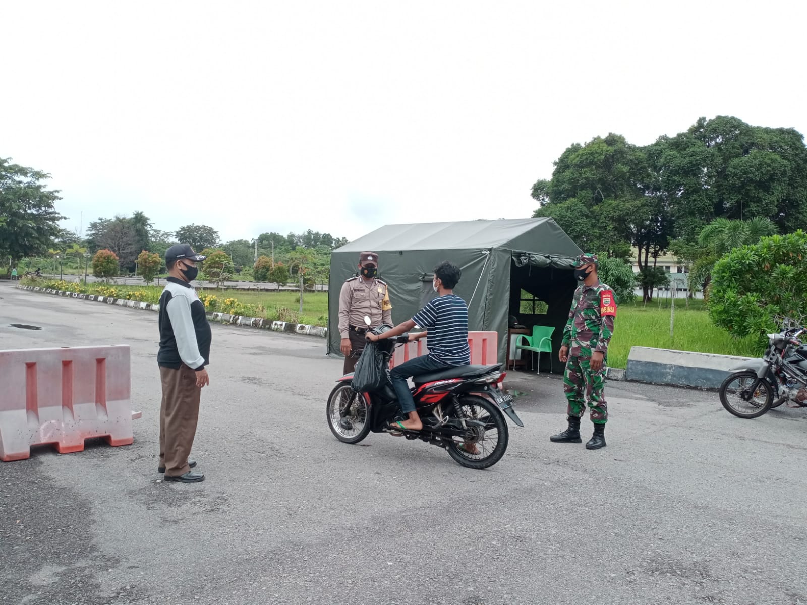 Danramil 03/Siak melalui Serda Nivri. HG mengatakan, Aparat gabungan TNI dan Satpol PP Kab. Siak melakukan pengamanan di tempat isolasi tersebut dengan tujuan melarang keras pengunjung baik itu orang tua maupun saudara untuk bertemu dengan pasien yang berada di tempat Isolasi.