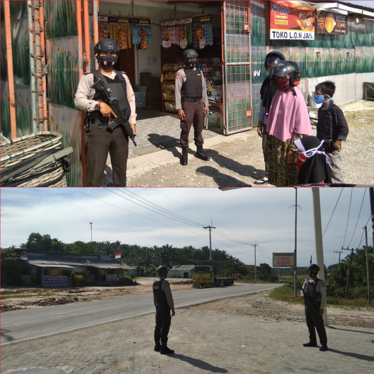 Kegiatan Patroli ini betempat di Pusat perbelanjaan Alfamart Kampung Bukit Agung. Dan Swalayan Lon Jaya Simpang Kampung Seminai, Kecamatan Kerinci Kanan, Kabupaten Siak, Riau. Selasa (6/10/2020)