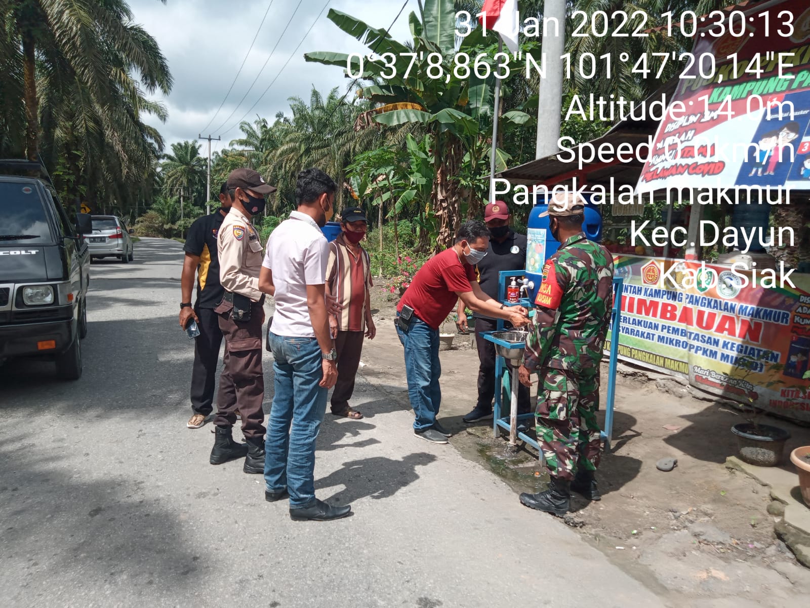 SIAK- Cegah terjadinya penularan Covid 19 di wilayah Kecamatan Dayun, Babinsa Koramil 01/Siak jajaran Kodim 0322/Siak Serda Ponidi dan Bhabinkamtibmas melaksanakan kegiatan himbauan Protokol Kesehatan kepada masyarakat Kampung Pangkalan Makmur Kecamatan Dayun Kabupaten Siak. Senin, 31/1/2022.