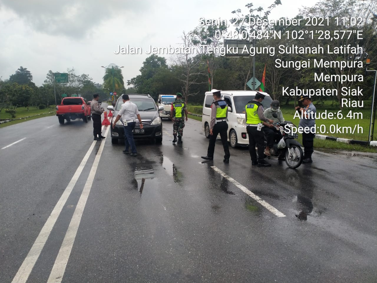Angota Koramil 01 Siak Bersama Polsek Siak, Dishub dan Satpol PP Melaksanakan Oprasi Lilin Lancang Kuning dan Himbauan Prokes