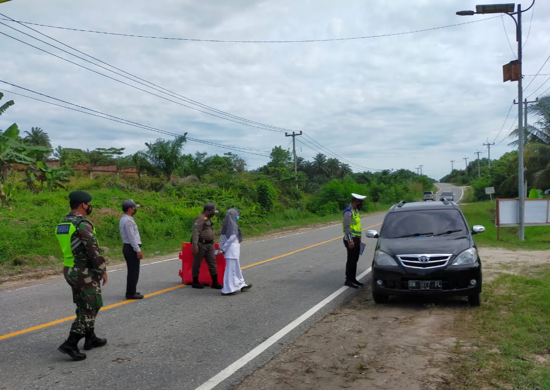 Antisipasi Arus Mudik Lebaran, Personil TNI, Polri, Dishub dan Satpol PP Siak Jaga Pos Penyekatan Lalu lintas Darat