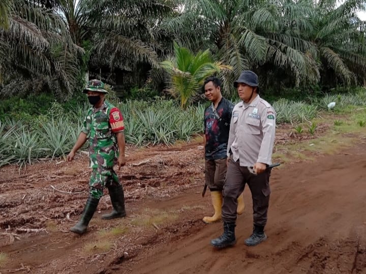 SIAK- Babinsa Koramil 01/Siak, Kodim 0322/ Siak Serma Zamzami bersama Babinkamtibmas dan masyarakat melaksanakan Patroli Karhutla di Kampung Dayun Kecamatan Dayun, Kabupaten Siak, Jumat (7/10/2022).