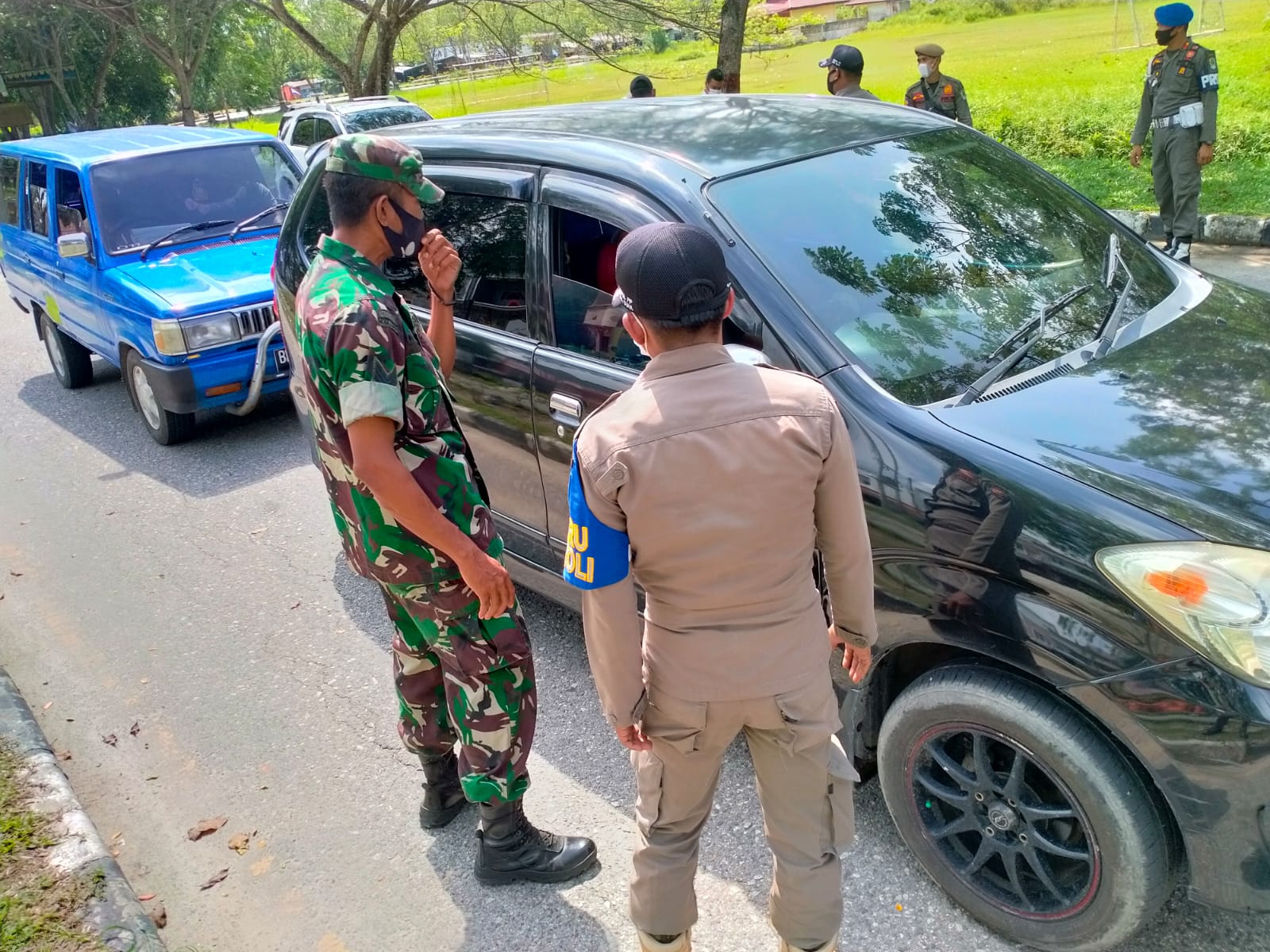 SIAK- Aparat gabungan dari Koramil 01/Siak Kodim 0322/ Siak Serka Joni bersama Anggota Polsek Siak, Dishub Siak dan Satpol PP menggelar kegiatan Ops Yustisi Protokol Kesehatan. Giat ini bertempat di Simpang Kwalian tepatnya di depan Puskesmas Siak, Kampung Rempak Kecamatan Siak Kabupaten Siak. Selasa,15 Februari 2022.