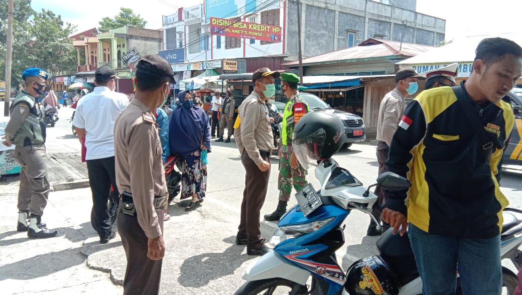 Siak Sri Indrapura – Gabungan Aparat Koramil 03/Siak, Polsek Siak dan Satpol PP menggelar Operasi Yustisi Gabungan penegakan Protokol Kesehatan Covid-19 kepada masyarakat di wilayah Teritorial Koramil 03/Siak, kegiatan tersebut dilaksanakan di jln.DR Sutomo Kelurahan Kampung Dalam Kecamatan Siak Kabupaten Siak. Minggu,(20/12/2020).