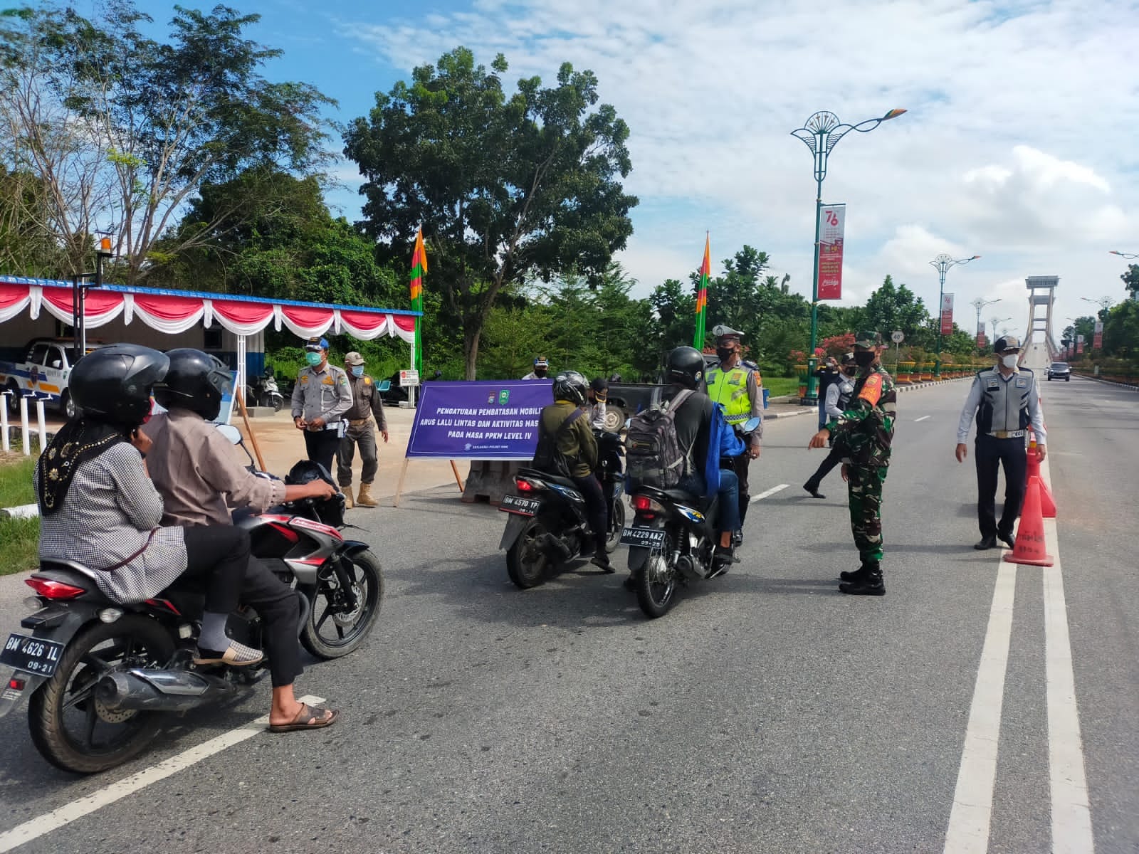 Penyekatan dilaksanakan bersama sama instansi terkait antara lain TNI, Polri, Satpol PP dan Dishub Kabupaten Siak dan Instansi Terkait dalam rangka pemberlakuan pembatasan kegiatan masyarakat (PPKM) Level IV.