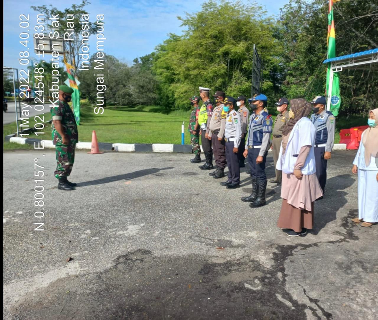 SIAK- Dalam rangka pelaksanaan kegiatan Pengamanan di Pos Terpadu Angkutan Lebaran Tahun 2022, Babinsa Koramil 01/ Siak jajaran Kodim 0322/Siak Serka Nurmin dan Koptu Erwin bersama, Polri, Dishub dan Satpol PP, dinas kesehatan memberhentikan setiap pengendara yang akan melintas depan pos penyakatan Tepatnya di bawah jambatan Tengku Agung Sultan Latifah, Kabupaten Siak. Minggu, 01 Mei 2022.