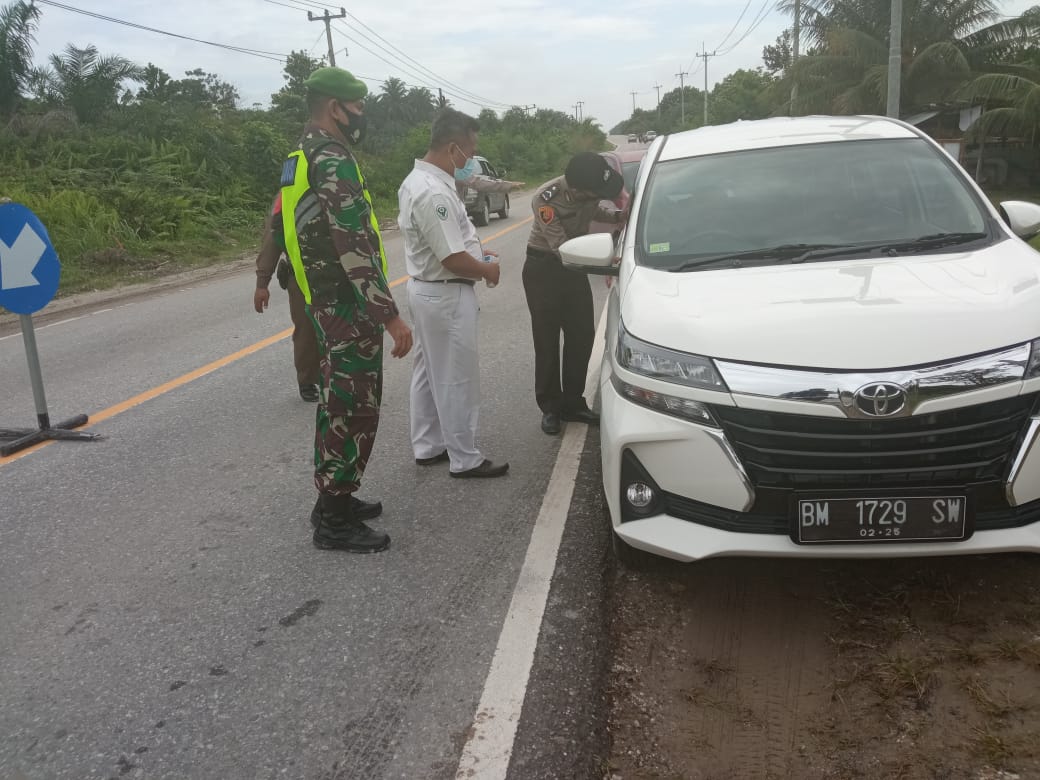 Kerinci Kanan -Aparat gabungan dari TNI, Polri, Satpol PP, Diskes dan Dinas Perhubungan mulai mengawasi warga yang nekat mudik memasuki periode larangan mudik, 6-17 Mei 2021 di Pos Penyekatan Lalu Lintas Darat Kec. Kerinci Kanan Kab. Siak.