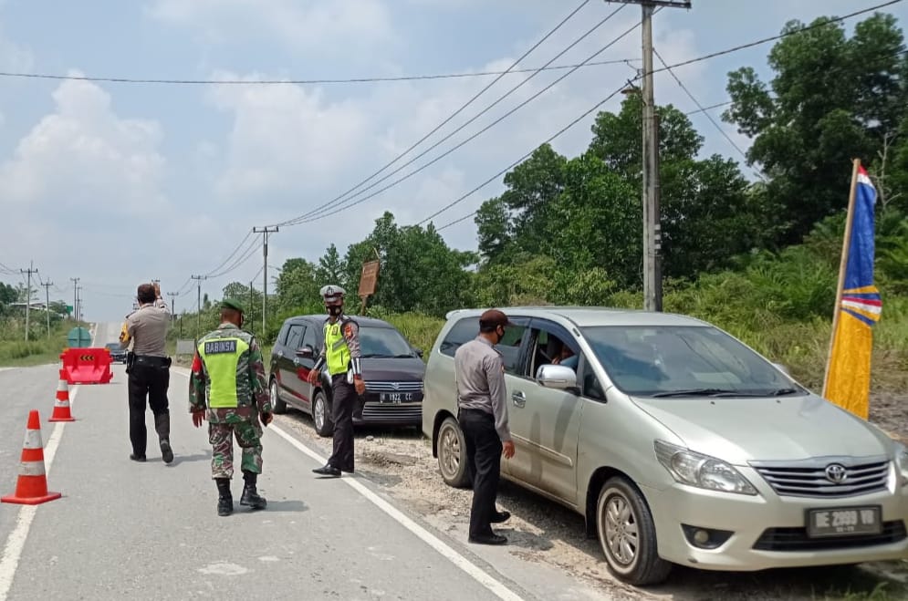 Aparat Gabungan Terus Berjaga 24 jam di Pos Penyekatan Perbatasan Kabupaten Pelelawan-Siak