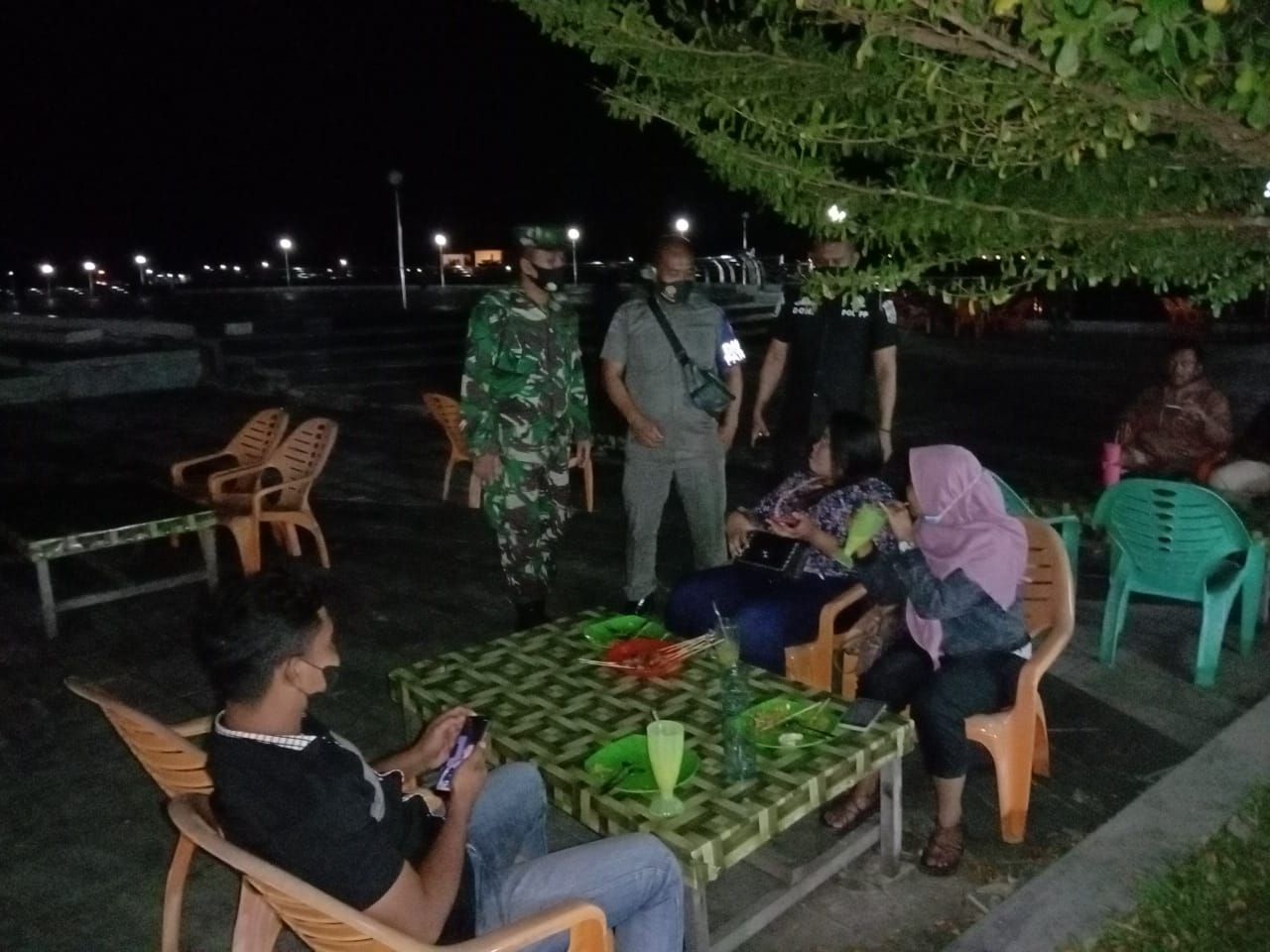Siak Sri Indrapura – Aparat gabungan dari Koramil 03/Siak Kodim 0303/Bengkalis bersama Polaek Siak dan Satpol PP Kab. Siak menggelar razia masker di sejumlah titik di Taman Tengu Mahratu Jln. Sultan Ismail Kelurahan Kampung Dalam dan Kampung Rempak Kecamatan Siak Kabupaten Siak, Sabtu (28/08/2021) Malam.