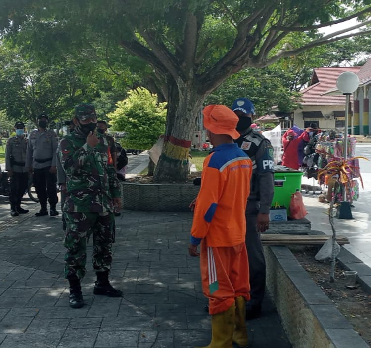 Aparat Gabungan TNI, Polri Dan Satpol PP Sambangi Taman Mahratu Terapkan Protokes