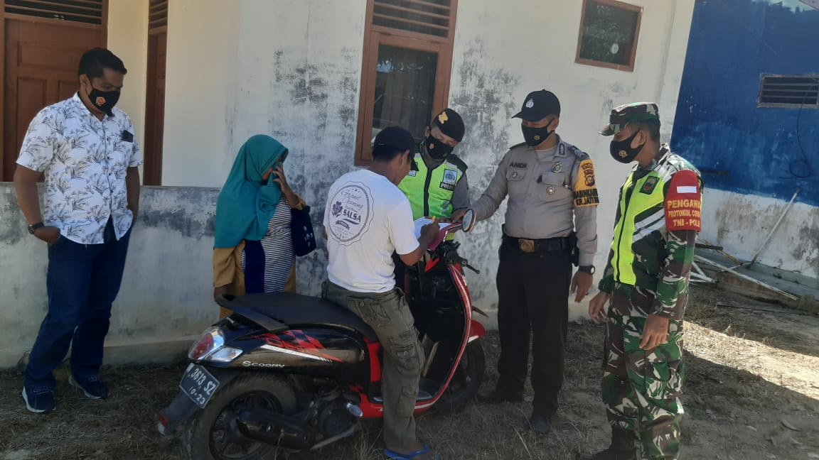 Pada kegiatan pendisiplinan protokol Kesehatan, Babinsa Junaidi bersama Bhabinkamtibmas mengajak warga masyarakat untuk bersama-sama menerapkan protokol kesehatan, sesuai dengan anjuran Pemerintah dalam memutus mata rantai penyebaran covid-19.