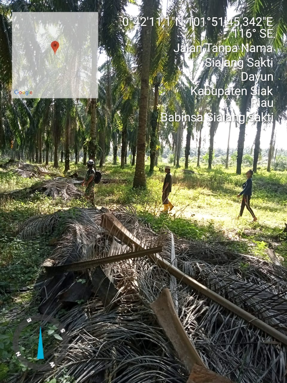 SIAK- Dalam rangka mencegah Kebakaran Hutan dan Lahan (karhutla), Koramil 01/Siak Jajaran kodim 0322/Siak Melakukan Patroli Karhutla di Kampung Sawit Permai, Kecamatan Dayun, Kabupaten Siak. Kamis, 03 February 2022.