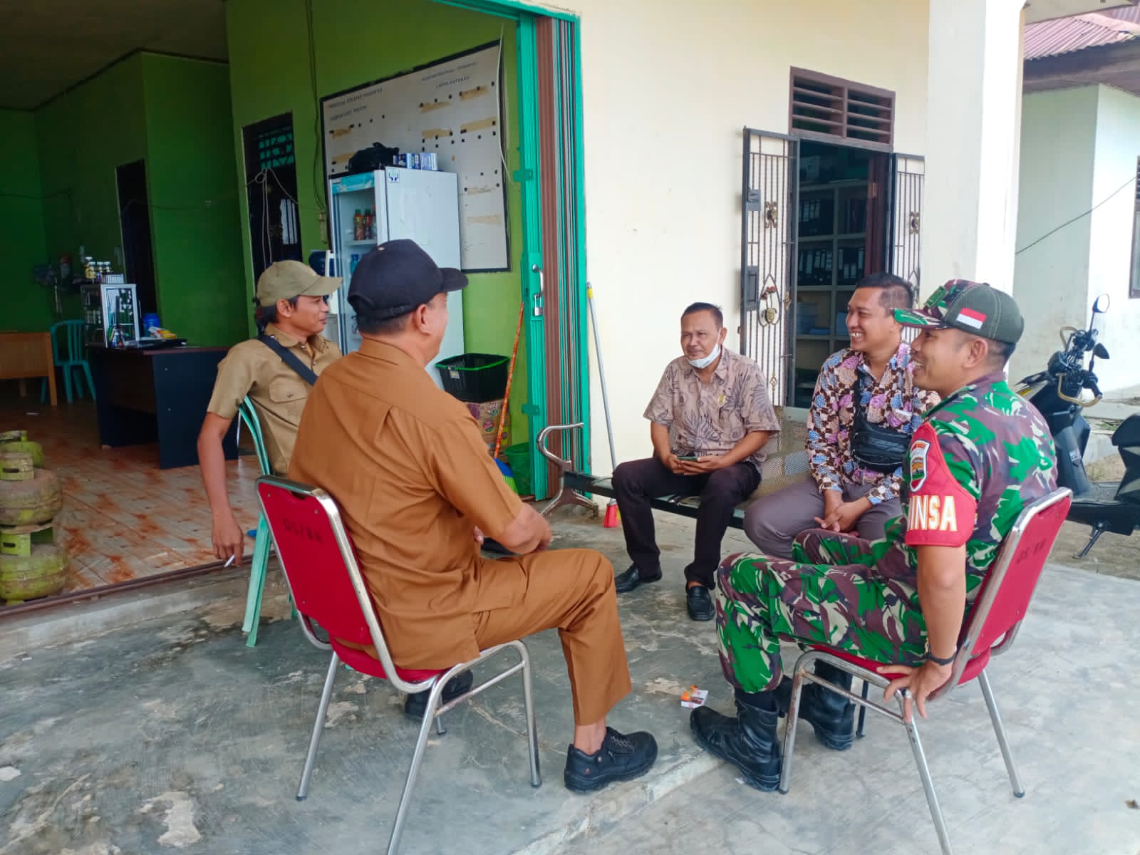 Babinsa Koramil 01/Siak Kodim 0322/Siak mengajak warga Desa binaannya tetap mematuhi prokes, saat melaksanakan sosialisasi dengan warga di Kampung Buana Bakti, Kecamatan Kerinci Kanan, Kabupaten Siak, Senin (24/10/2022).