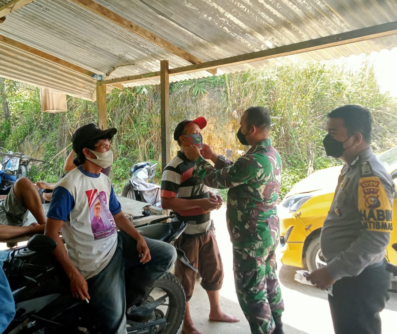 Babinsa Bersama Bhabinkamtibmas Bagikan Masker Kepada Warga Binaan