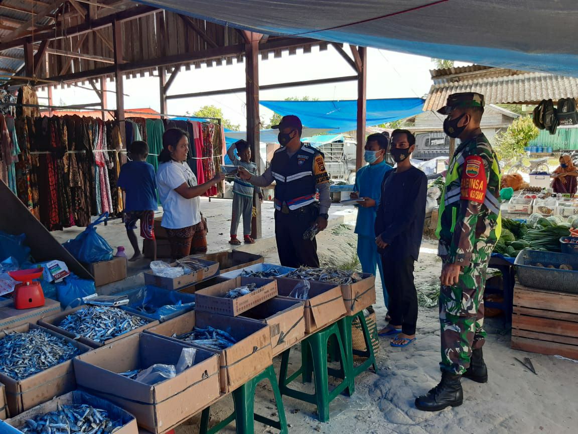Babinsa bersama Bhabinkamtibmas Belusukan Terapkan Protkes di Pasar Tradisional