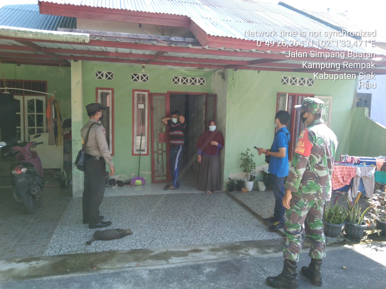 Siak Sri Indrapura – Babinsa Koramil 03/Siak Serda JM. Simatupang bersama Bhabinkamtibmas Bripka Novri Yanto dan Lurah Kampung Rempak Zhurizan Nur Falah, S. STTP dan Serta Staf Kelurahan melaksanakan kegiatan PPKM Skala Mikro dengan melaksanakan Tracking warga binaan sebanyak 5 orang yang sudah isolasi mandiri di Rumah Kelurahan Kampung Rempak Jl.Perenjak Rt 03 Rw 02 Kel. Kampung Rempak Kecamatan Siak Kabupaten Siak,Kamis (15/07/2021).