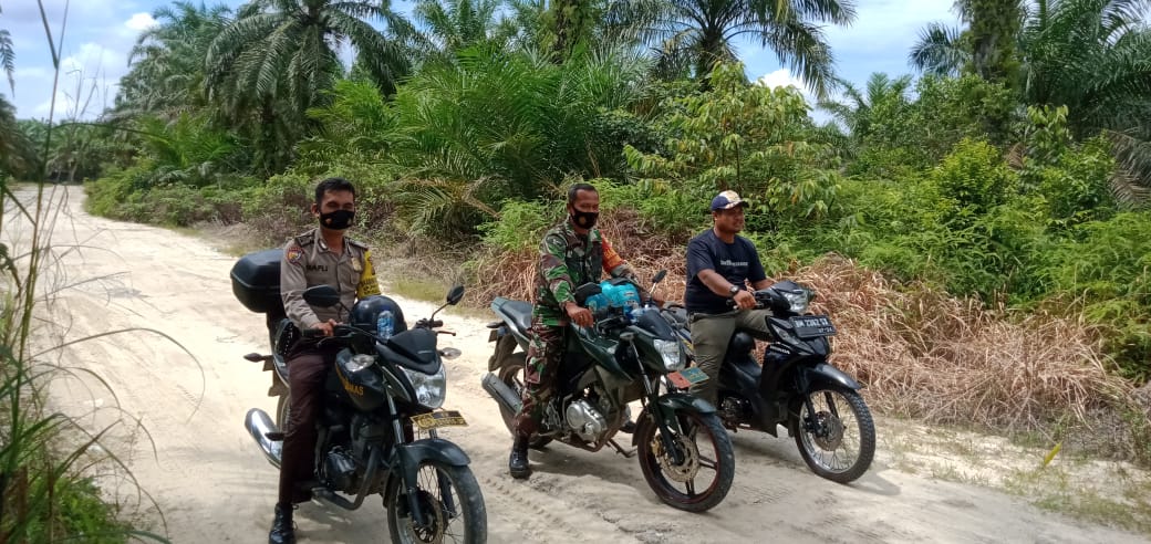 Dayun – Babinsa Kampung Pangkalan Makmur Koramil 03/Siak Kodim 0303/Bengkalis bersama Bhabinkamtibmas dan MPA melaksanakan patroli rutin menggunakan sepeda motor ke wilayah yang rawan akan kebakaran hutan dan lahan di Kampung Pangkalan Makmur Kecamatan Dayun Kabupaten Siak, (19/11/2021).