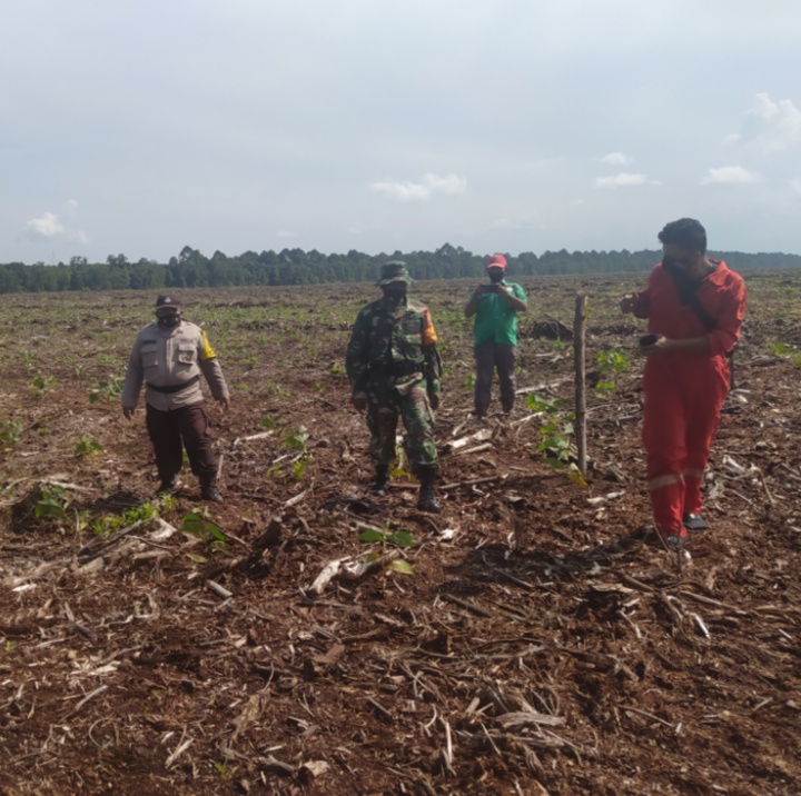 Serma Zamzami bersama tim Patroli Terpadu Pencegahan Karhutla melaksanakan Patroli pemetaan atau mapping lahan lahan kosong habis penebangan di Kampung Dayun Kecamatan Dayun.