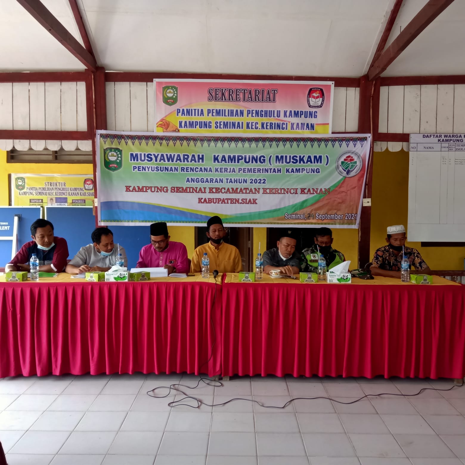 Kerinci Kanan – Babinsa Kampung Seminai Koramil 03/Siak Serma Erianto menghadiri undangan Musyawarah Kampung Muskam) dalam rangka penyusunan rencana RKP tahun anggaran 2022 bertempat di gedung pertemuan Kampung Seminai Kecamatan Kerinci Kanan Kabupaten Siak,Sabtu (25/09/2021).