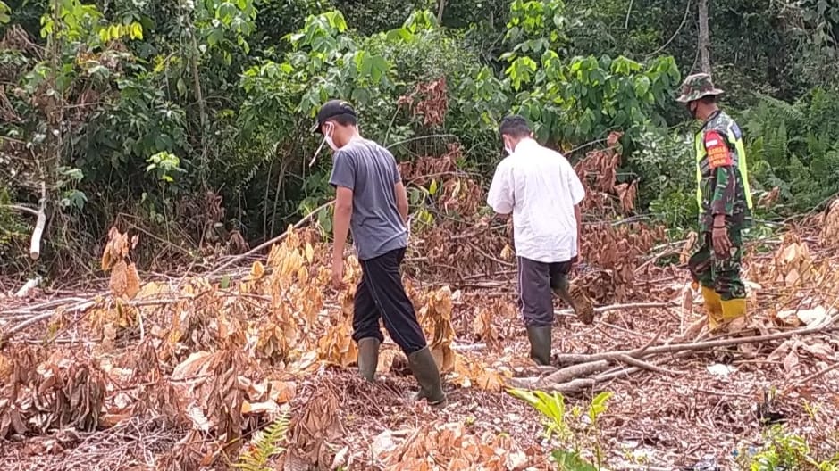 Babinsa dan Masyarakat Patroli Cegah Karhutla