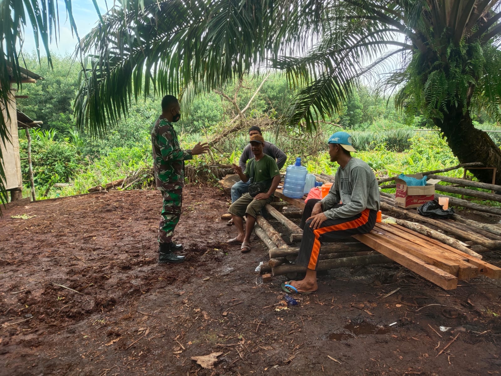 Sertu Warto saat melaksanakan Patroli melaksanakan Komsos dengan petani di perkebunan warga menyampaikan, kebakaran hutan dan lahan memberikan dampak yang tidak baik bagi kita semua.