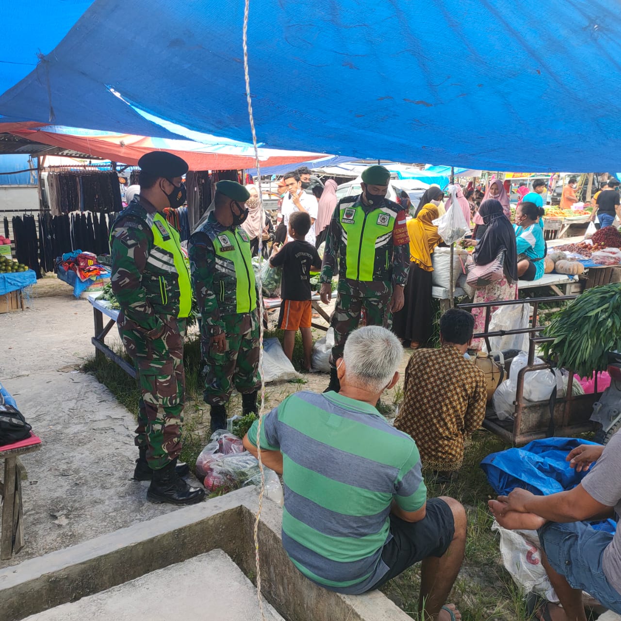 Di pasar tersebut, Babinsa dan Aparatur Kampung memberikan himbauan kepada para pedagang dan pengunjung untuk disiplin menggunakan masker saat melakukan aktifitas di pasar guna mencegah dan memutus mata rantai Covid-19.