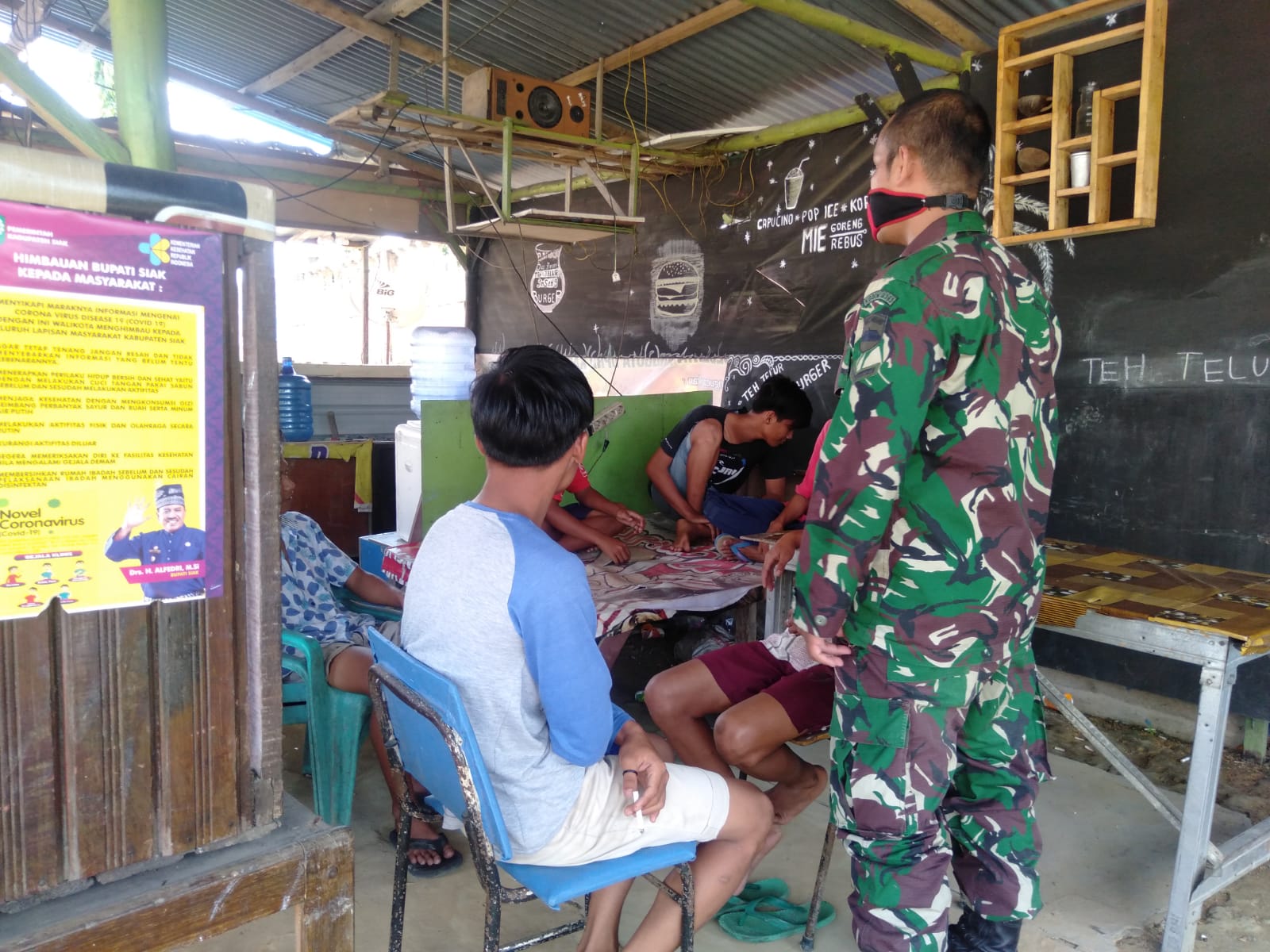 “Semua jajaran Babinsa dari Koramil 03/Siak di turun ke lapangan untuk berupaya melakukan Penegakan Disiplin Mematuhi Protokol Kesehatan guna pemutusan penyebaran Corona,” ujar Kapten Inf Junaidi.
