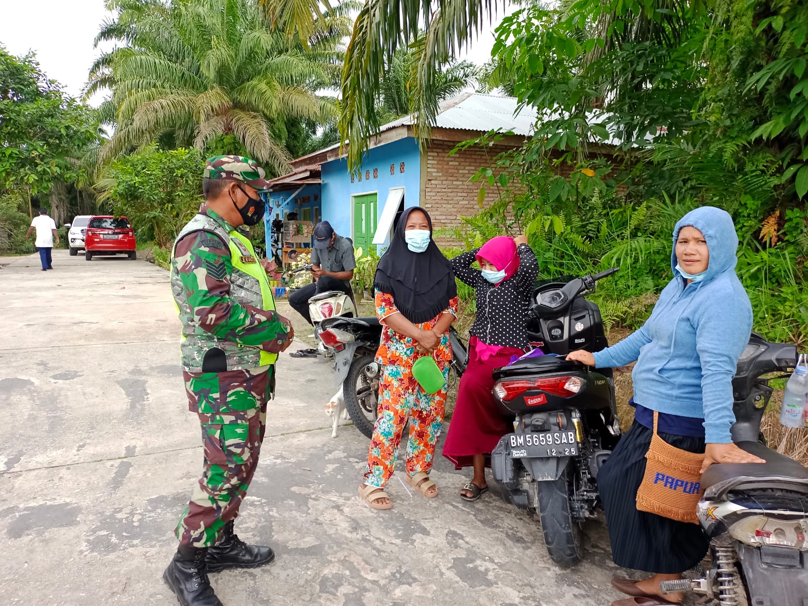 Serma Erianto Babinsa Kampung Kerinci Kanan Koramil 03/Siak, selain melaksanakan kegiatan patroli wilayah sekaligus dimanfaatkan untuk memberikan himbauan kepada warga Kampung binaan agar mengikuti protokol kesehatan guna mencegah penyebaran Covid 19.
