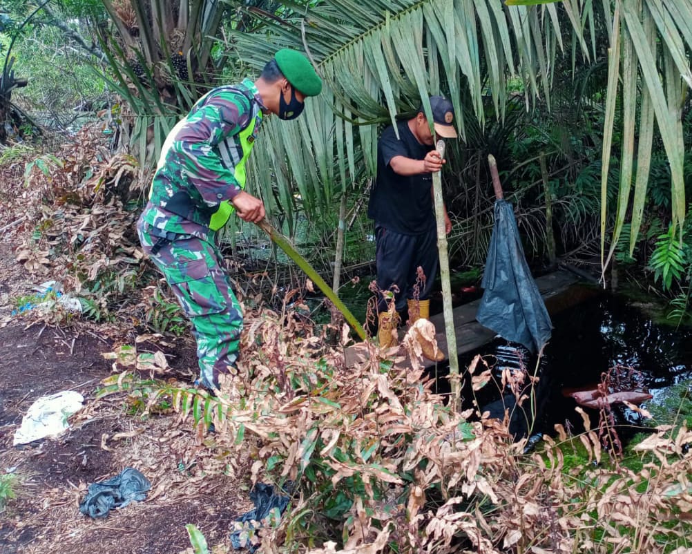 Siak Sri Indrapura – Babinsa Kampung Merempan Hulu Koramil 03/Siak bersama MPA melaksanakan patroli terpadu pencegahan kebakaran hutan dan lahan (Karhutla) di wilayah Kampung Merempan Hulu Kecamatan Siak Kabupaten Siak, Selasa (29/06/2021).