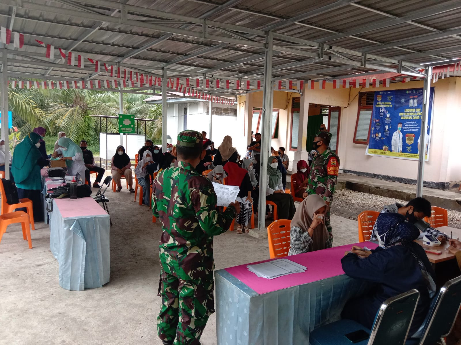 Babinsa Kawal dan Dampingi Pelaksanaan Vaksin Sinovac di UPT Puskes Mempura