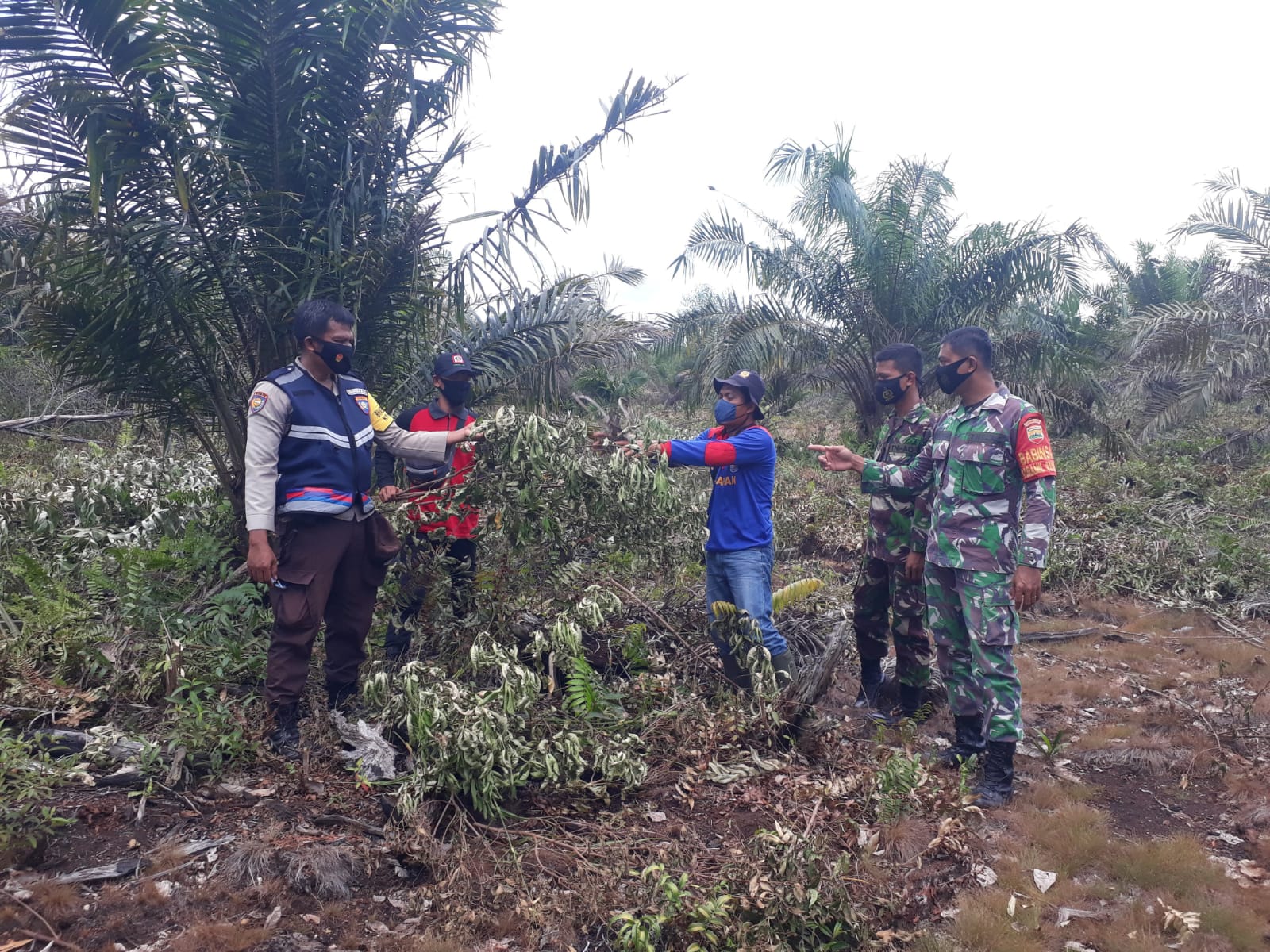 Babinsa Koramil 01 Siak Serda J. Simatupang secara bersama sama dengan rekanya menelusuri perkebuna waraga yang rawan dan sering terbakar di Kampung Benteng Hulu, Kecamatan Mempura, Kabupaten Siak. Minggu,30 Januari 2022.