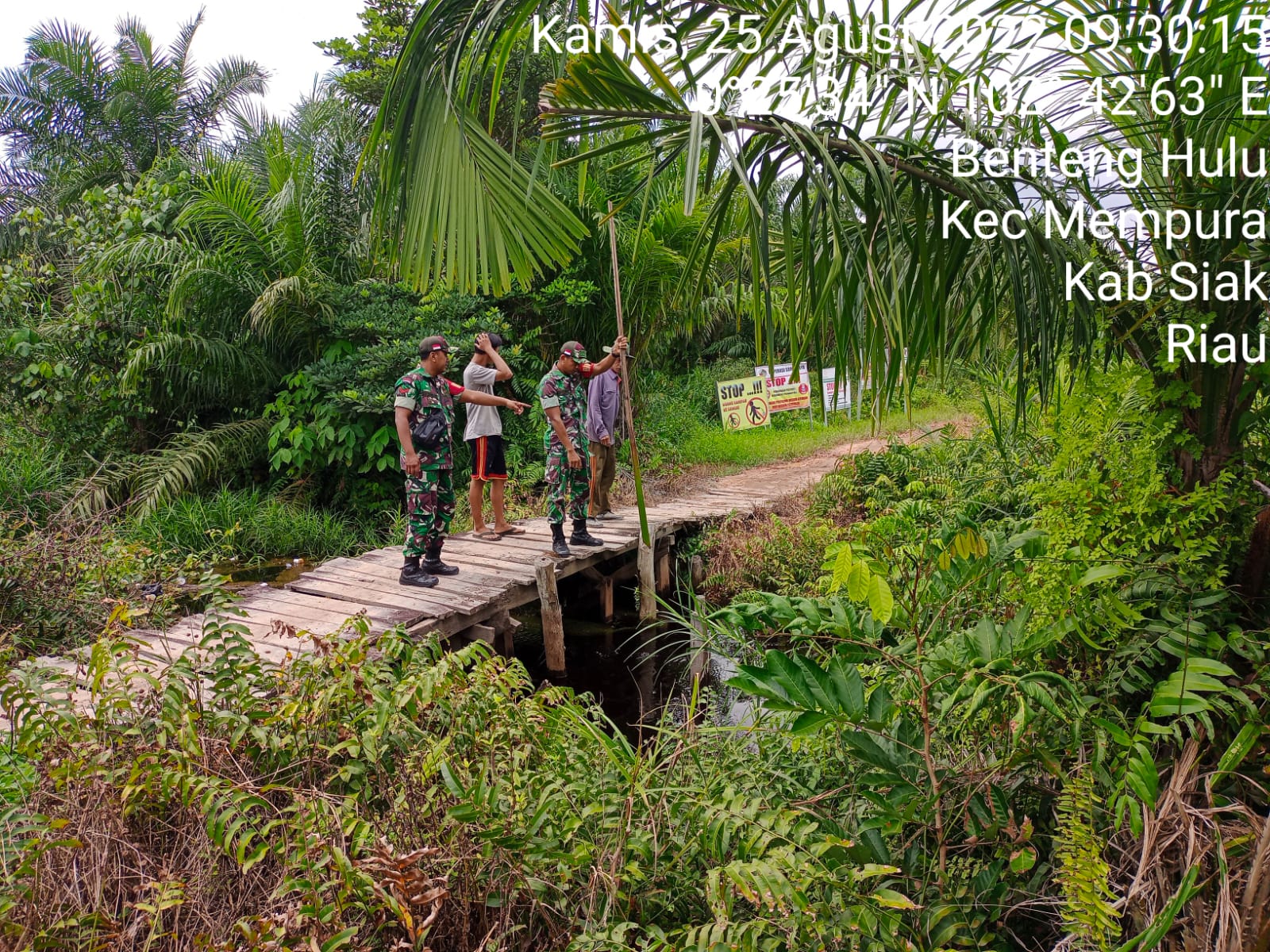 SIAK- Babinsa Koramil 01/Siak, Kodim 0322/ Siak Serda Jhon Anggiat Simatupang bersama rekan babinsa serta masyarakat melaksanakan Patroli Karhutla di Kampung Benteng Hulu, Kecamatan Mempura, Kabupaten Siak, Kamis (25/08/2022).