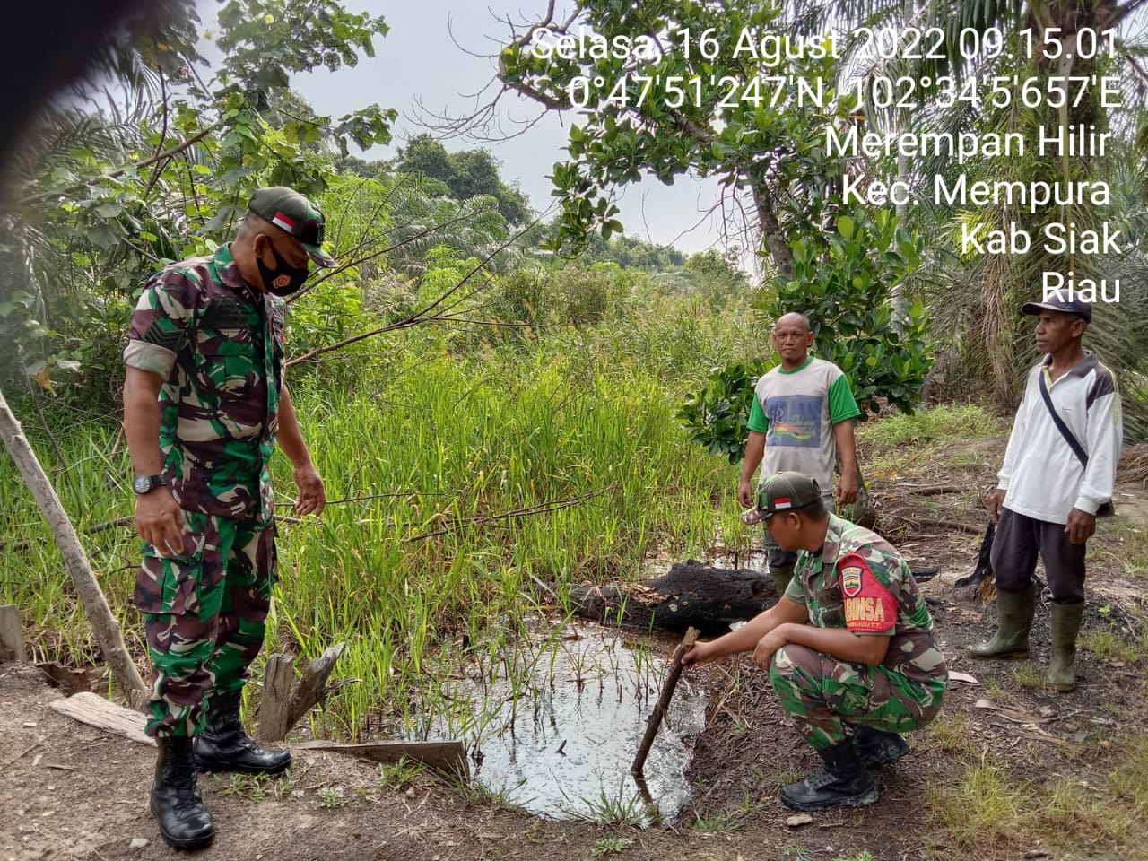 SIAK- Babinsa Koramil 01/Siak, Kodim 0322/Siak Patroli Karhutla di kampung Merempan Hilir RT 04/RW 02 Kecamatan Mempura Kabupaten Siak. Selasa tanggal 16 Agustus 2022.