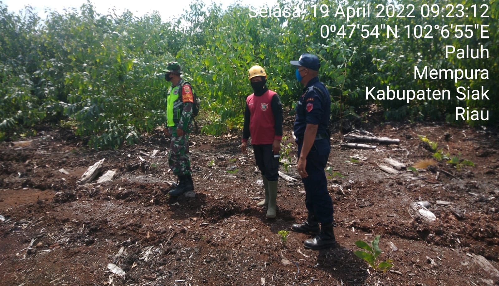 SIAK- Babinsa Koramil 01/Siak jajaran Kodim 0322/Siak Serka Irwan bersama Masyarakat Peduli Api(MPA) Dan Mangala Agni rutin lakukan patroli dan sosialisasi pencegahan Kebakaran Hutan dan Lahan (Karhutla) di wilayah binannya. Kegitan Patroli Karhutla ini di Kampung Paluh Kecamatan Mempura Kabupaten Siak. Selasa,19 April 2022.