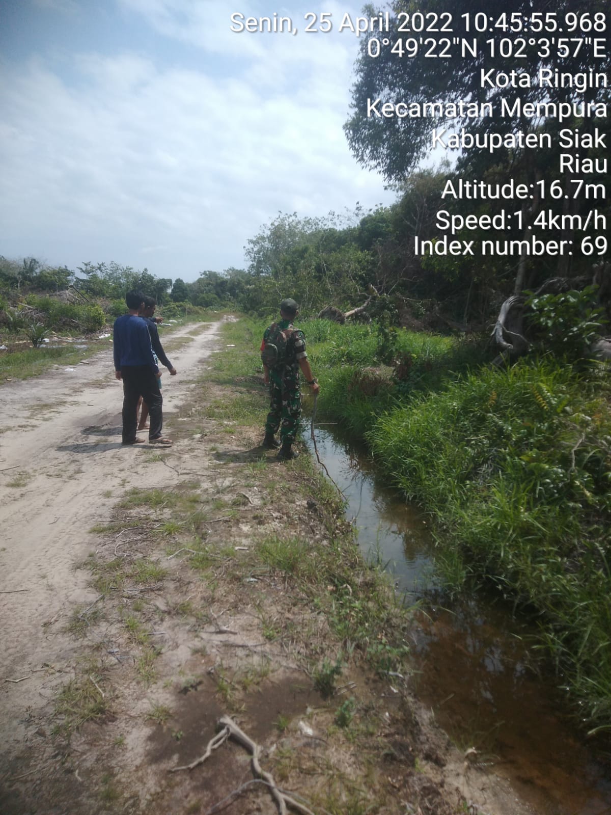 SIAK- Babinsa Koramil 01/Siak jajaran Kodim 0322/Siak Serka Irwan bersama Masyarakat Peduli Api(MPA) melaksanakan kegiatan Patroli Karhutla di Kampung Koto Ringin Kecamatan Mempura Kabupaten Siak. Senin,25 April 2022.