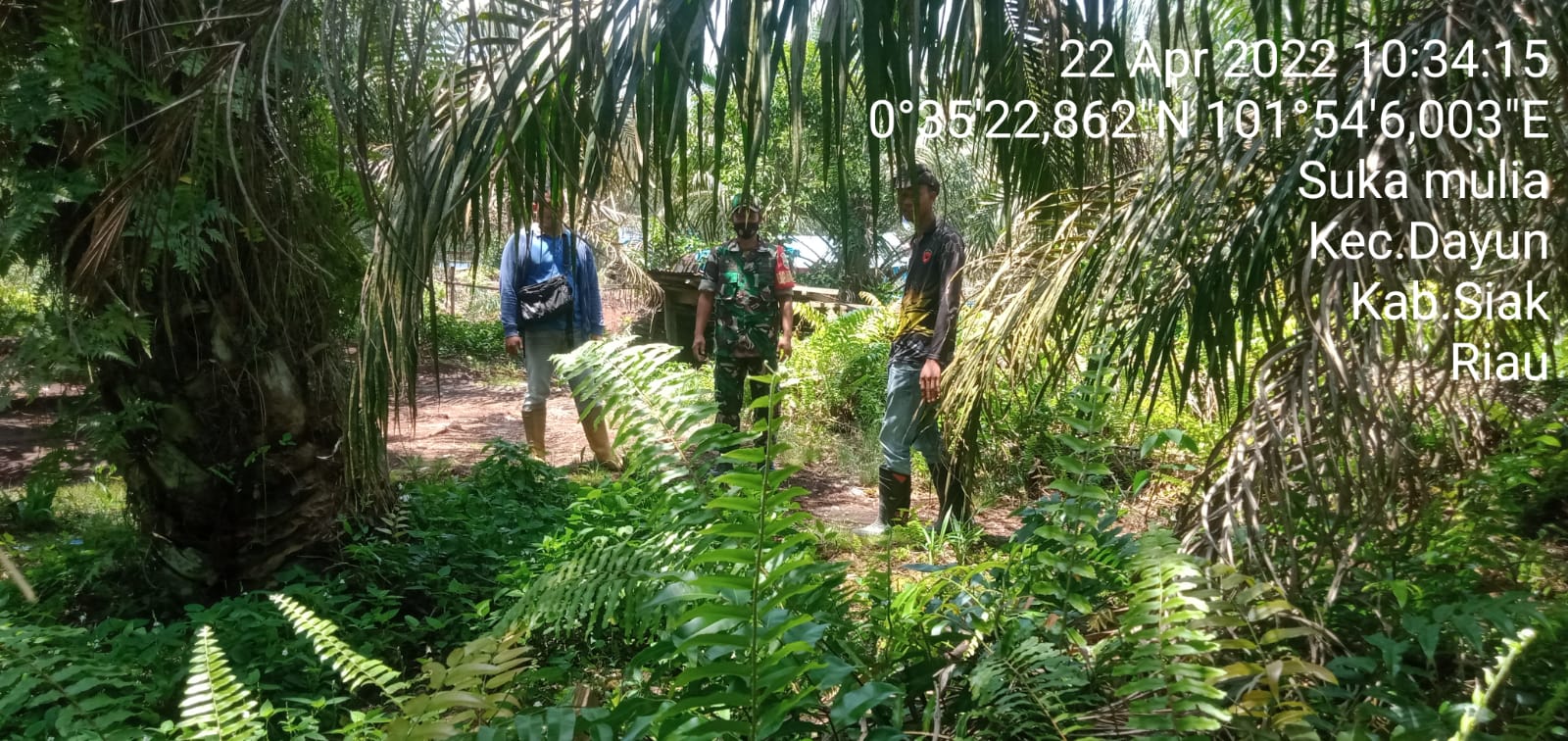 SIAK- Meski di Bulan Ramadhan, Babinsa Koramil 01/Siak jajaran Kodim 0322/Siak melaksanakan kegiatan Patroli Karhutla di Kampung Suka Mulia, Kecamatan Dayun, Kabupaten Siak. Jumat, 22 April 2022.