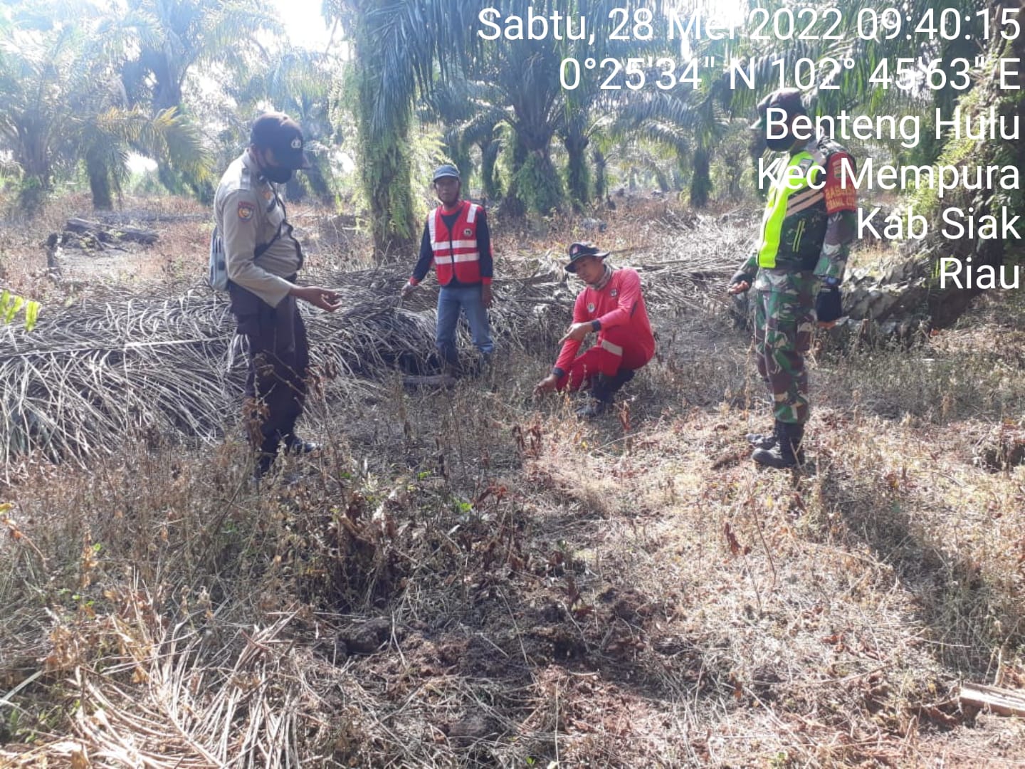 SIAK- Babinsa Koramil 01/Siak jajaran Kodim 0322/Siak Serda Jam Simatupang bersama Bhabinkamtibmas dan Mangala Agni melaksanakan kegiatan Patroli Karhutla di Kampung Benteng Hulu Kecamatan Mempura Kabupaten Siak. Sabtu,28 Mei 2022.